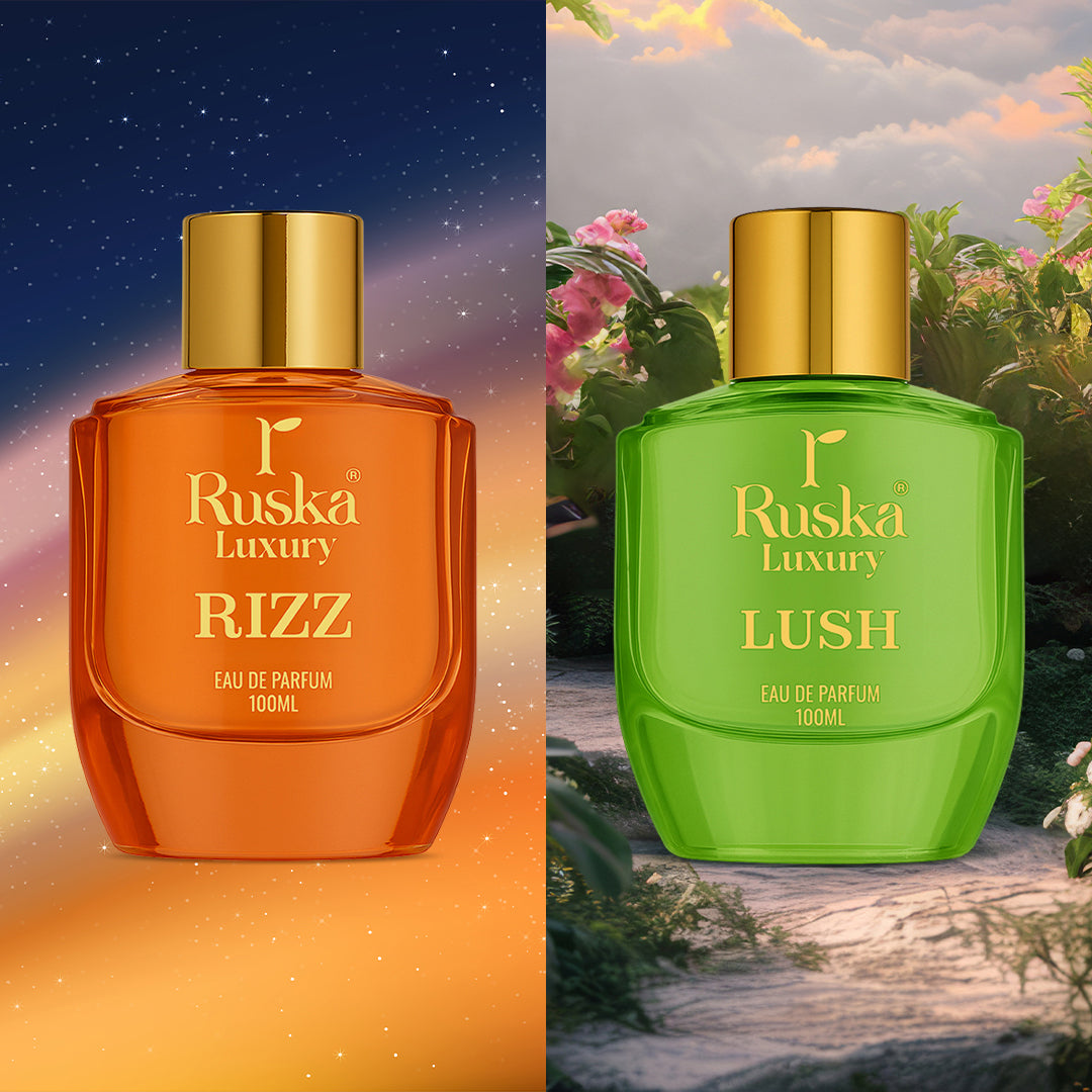Experience the refined beauty of Lush and Ruska — two premium Eau de Parfums crafted for unforgettable moments.